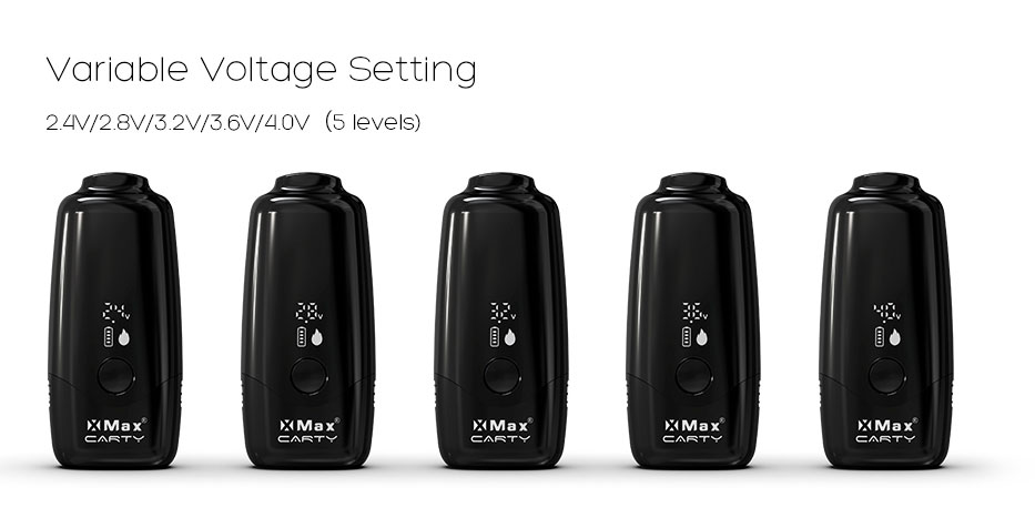 XMax CARTY leads the way in vaping convenience with its concealed battery and magnetic connection, effortlessly accommodating cartridges up to 2 grams for a secure and smooth vaping experience. The 0.6-inch LED screen offers clear display of settings and battery levels, while adjustable voltage settings from 2.4V to 4.0V cater to individual preferences.